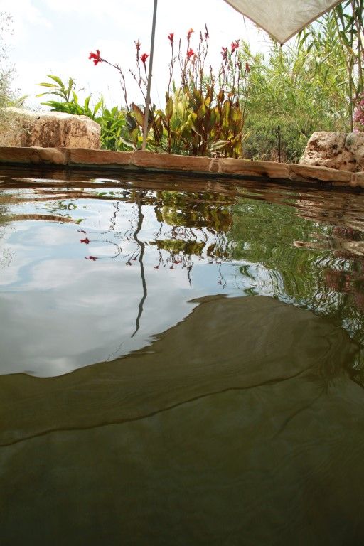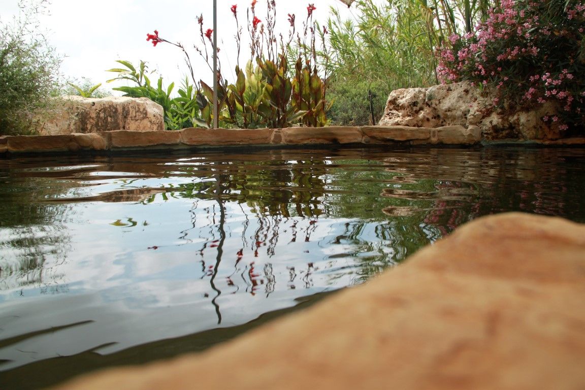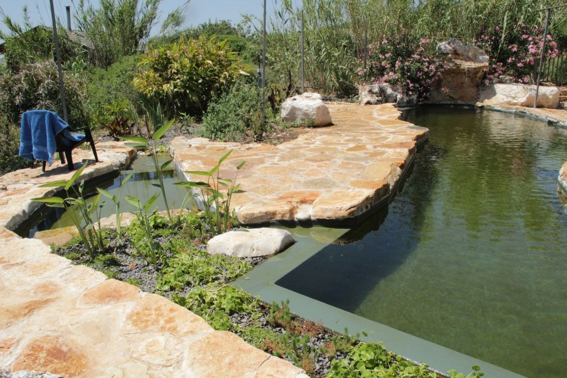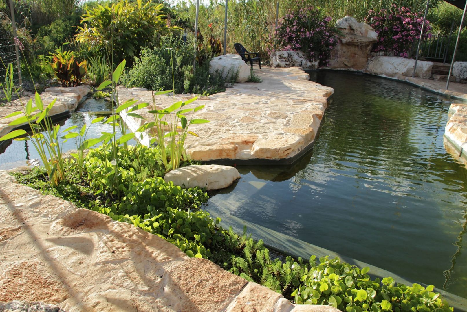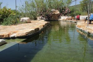 בריכה אקולוגית עם מים חיים כמי מעיין.