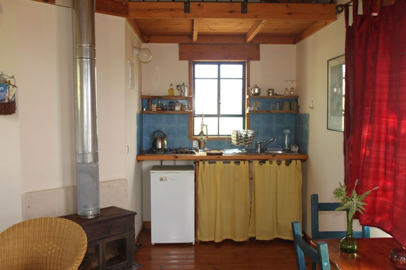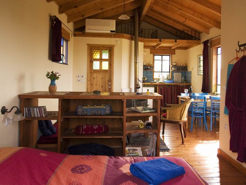 חלל אחד גדול עם אזור שינה, פינת ישיבה למול הנוף, קמין עץ, מטבח מצוייד ואמבט